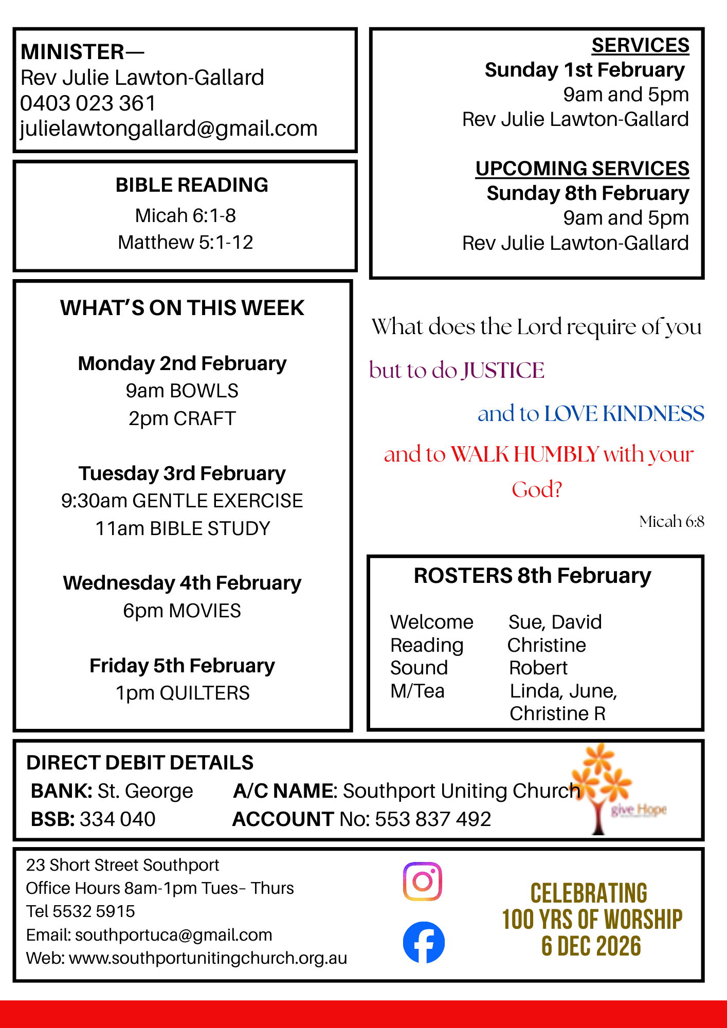 Cnr. Short & Scarborough Streets, Southport. Phone 55325915 Email southportuca@gmail.com
