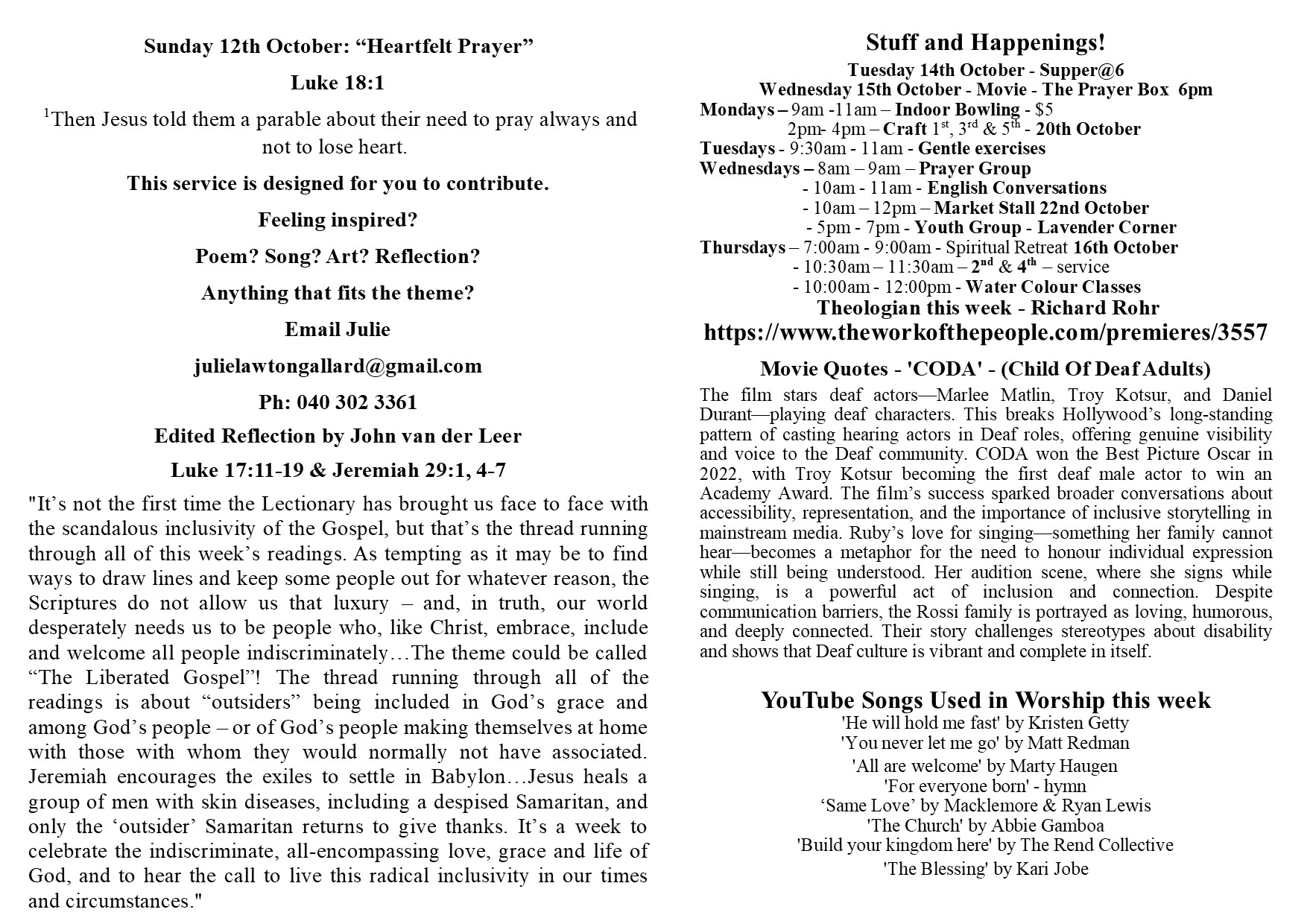 Connecting with the heart of God, Congregation and Community