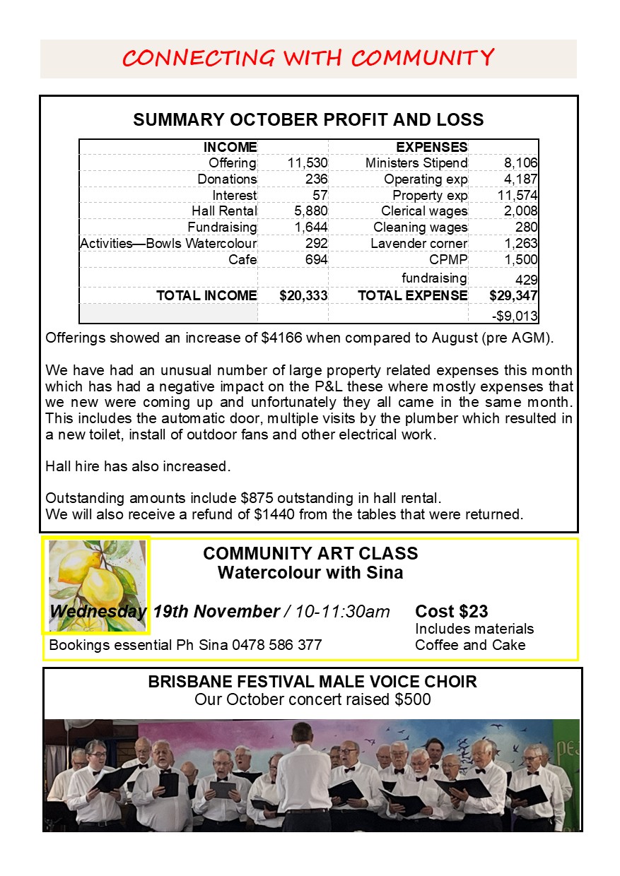 We have new tables! Sadly they are not really any different to the ones we have had – but at this stage the legs will press into rings underneath. We had a shipment of “moulded legs” tables – but when we opened them, they were just the same as what we already had, so we were refunded and have chosen to buy cheaper tables with the determination to sell them off when the clasp breaks underneath. At best guess the last lot of tables are at least 10 years old – so we should be right! The Brisbane Festival Male Voice Choir were wonderful again, sharing a story of faith through their performance. Last year they managed to recruit someone from our audience – pretty chuffed about that! It was lovely to have my folks up for a few days – always willing to participate in bowls and whatever else is on. Last Sunday marked the 2 year anniversary of the 5pm service, and whilst we are not large in number, we have enjoyed the freedom to be less traditional, and have birthed some ministry options such as ‘Supper@6’ and the movie night. As I have stated so many times before, what is even more exciting is how many of the evening people feel comfortable in the 9am service – such a gift. The constant gift that David brings each Sunday with his literary skills won’t ever be taken for granted – God definitely inspires his writing. ‘The Railway Man’ is a movie I would highly recommend – it certainly makes forgiveness look easier in our own contexts. Alos ‘The case for Christ’ is a movie about Lee Strobel’s conversion – and it can be rented via YouTube or Apple TV.