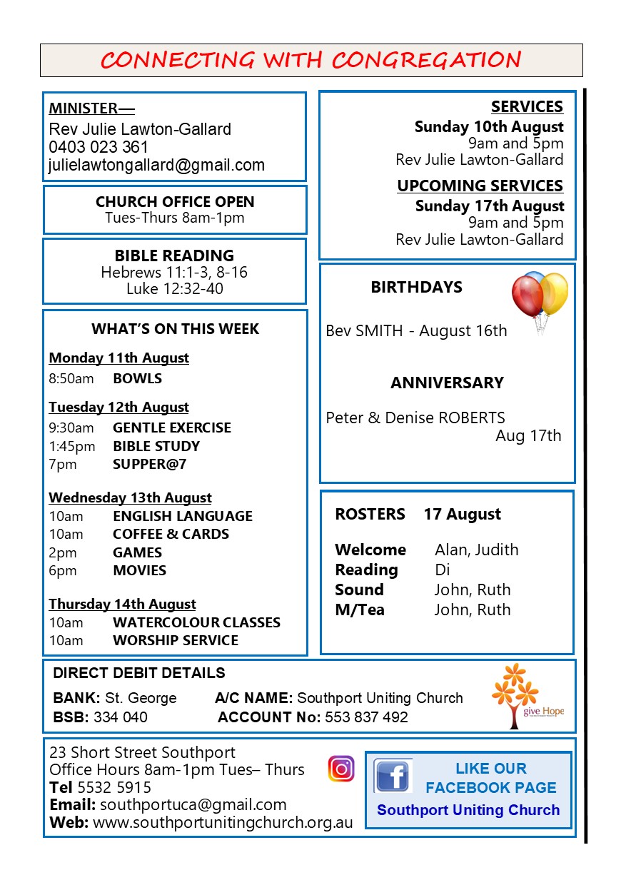 Cnr. Short & Scarborough Streets, Southport. Phone 55325915 Email southportuca@gmail.com