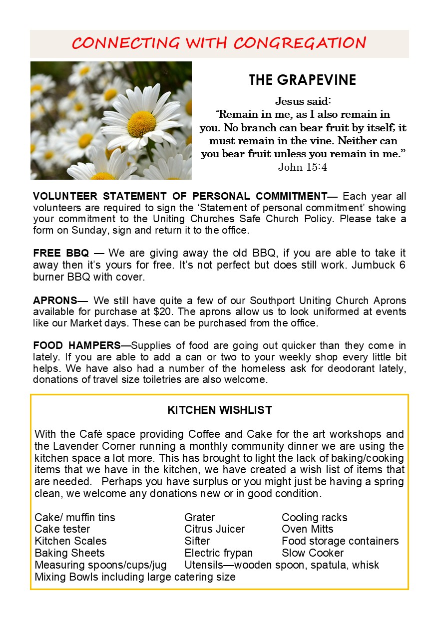 Connecting with the heart of God, Congregation and Community