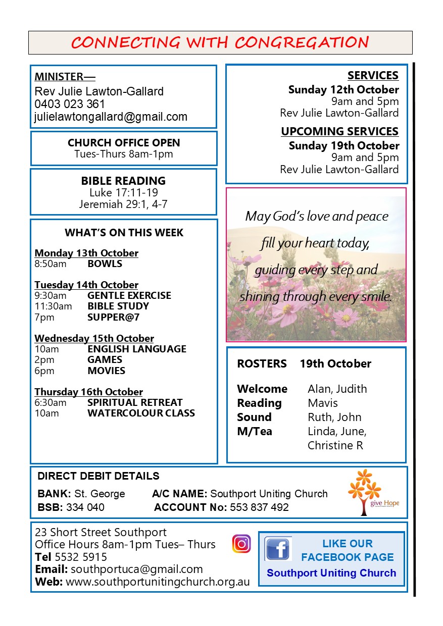 Cnr. Short & Scarborough Streets, Southport. Phone 55325915 Email southportuca@gmail.com