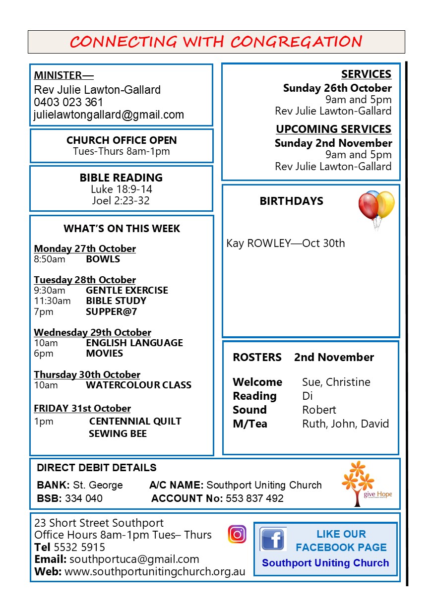 Cnr. Short & Scarborough Streets, Southport. Phone 55325915 Email southportuca@gmail.com