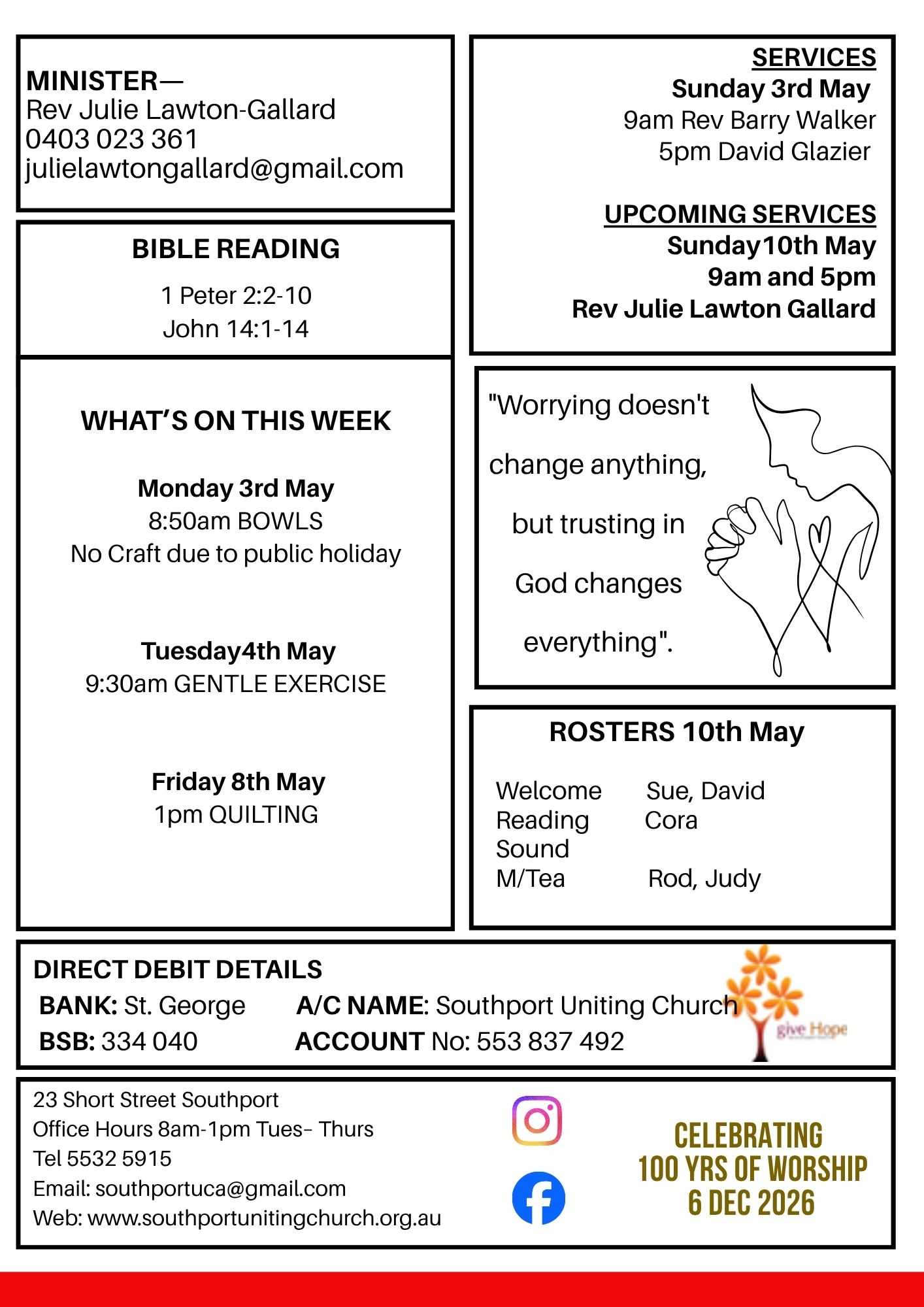 Cnr. Short & Scarborough Streets, Southport. Phone 55325915 Email southportuca@gmail.com