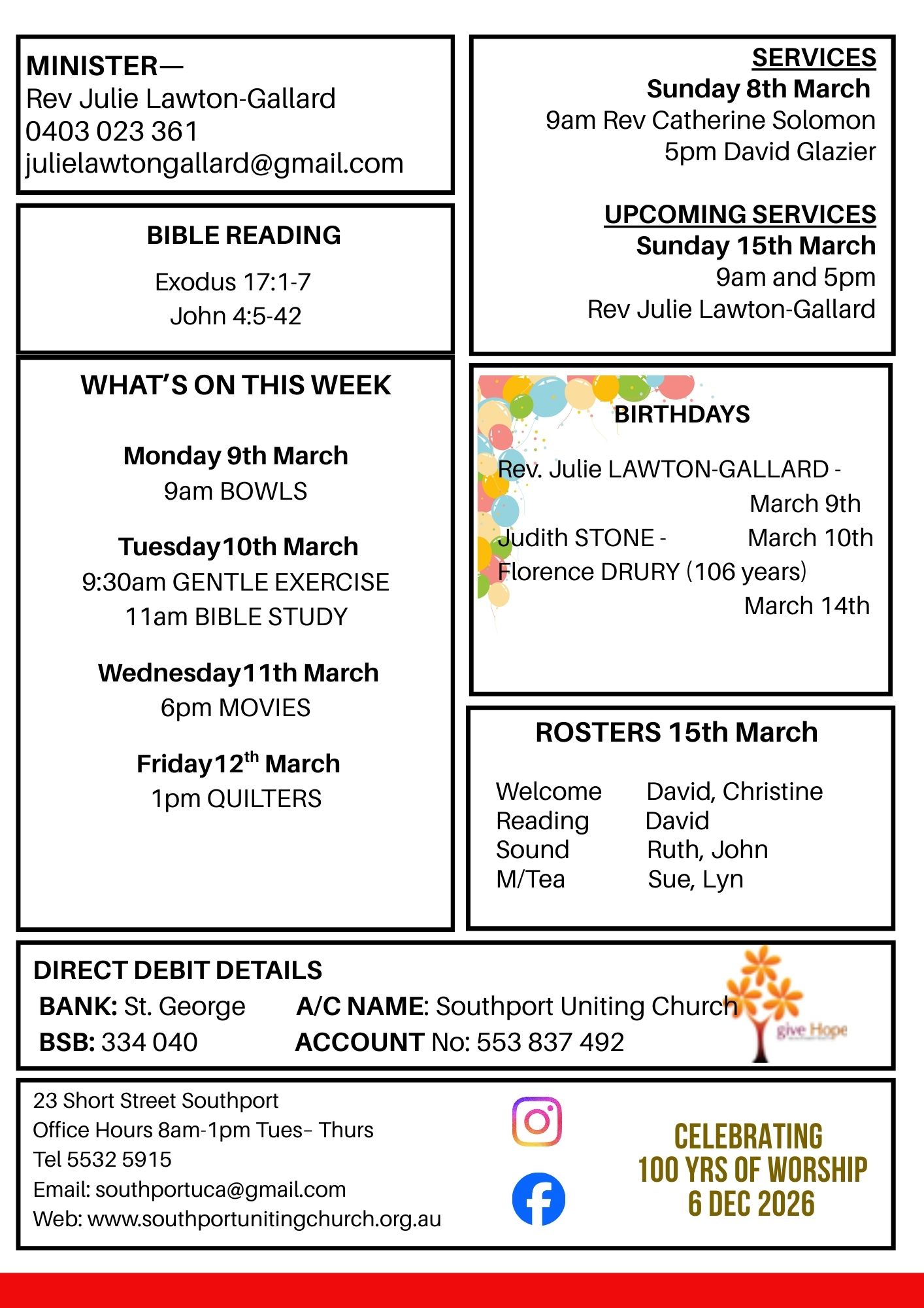 Cnr. Short & Scarborough Streets, Southport. Phone 55325915 Email southportuca@gmail.com